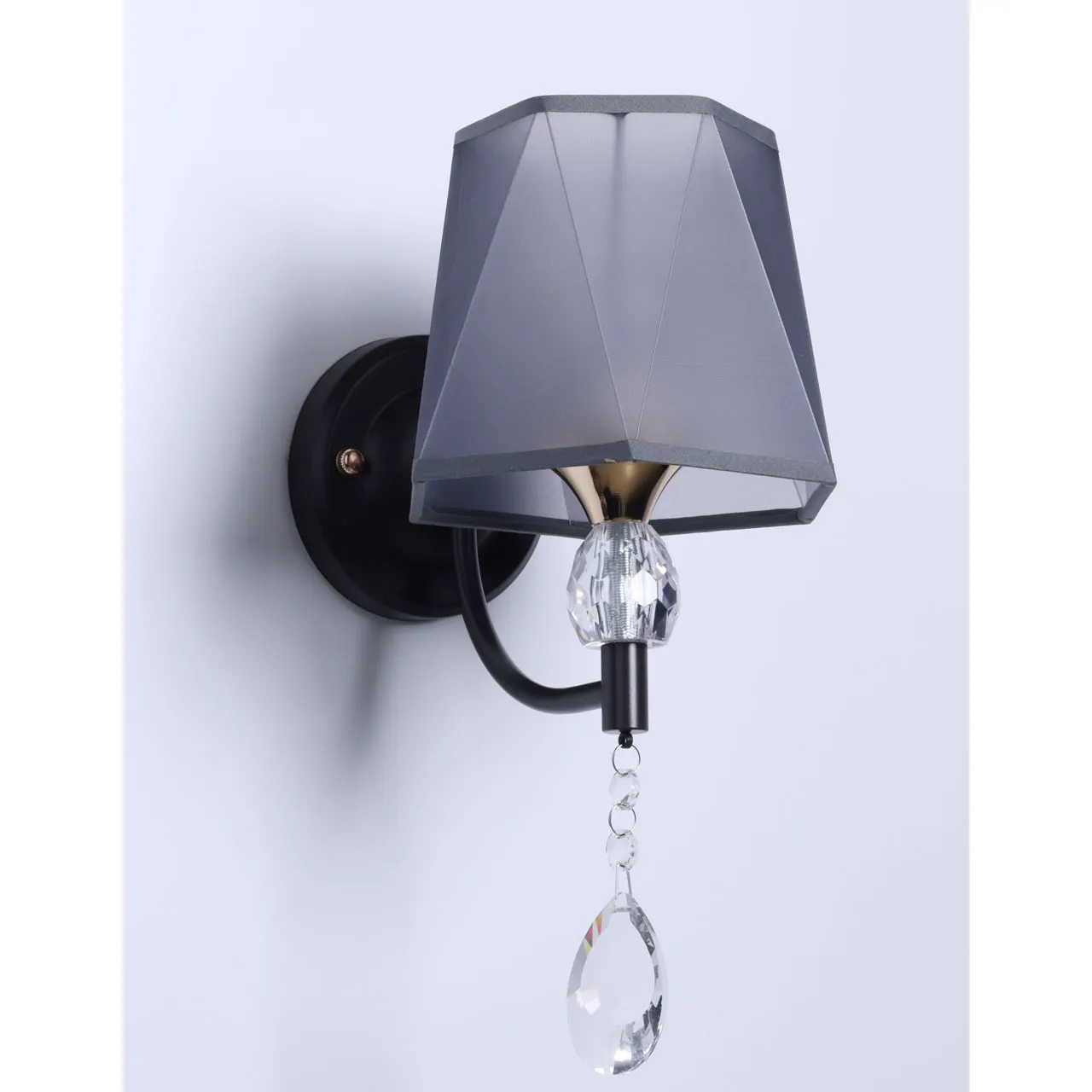 Основание/ металл/ золото, кофе Абажур/ акрил, текстиль/ прозрачный, серый Декор/ хрусталь/ прозра