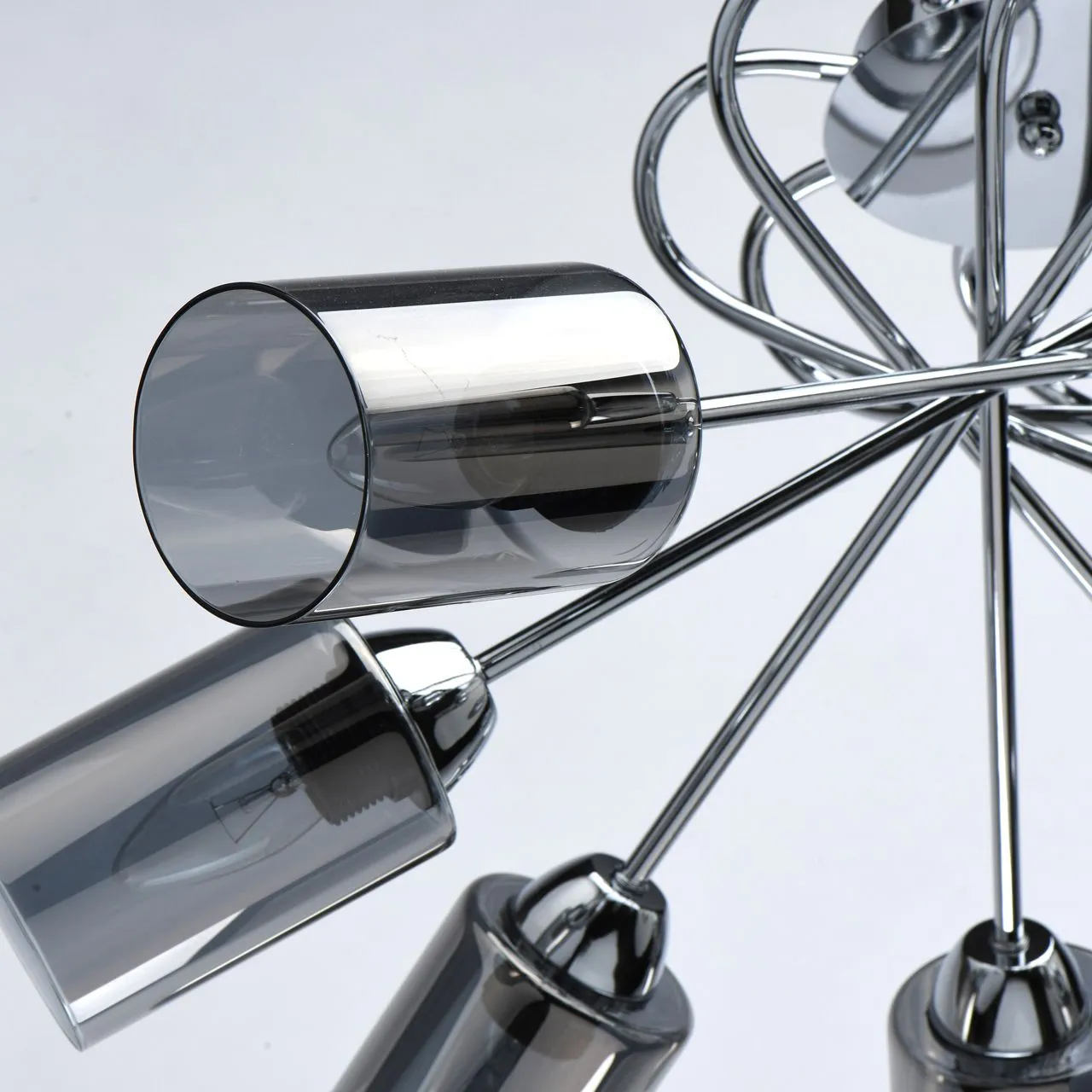 Основание/металл/хром. Плафон/стекло/дымчатый.