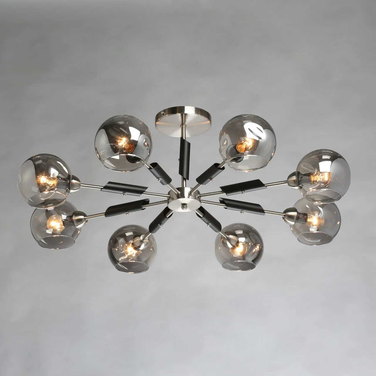 Основание/ металл/ матовый хром, черный цвет Плафоны/ стекло/ дымчатый