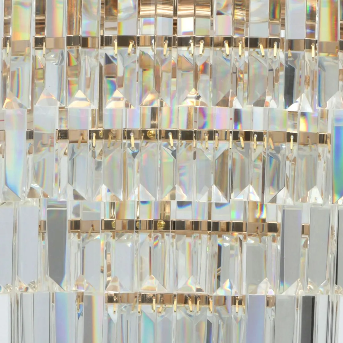 Металлическое основание цвета золота. Декор: хрусталь прозрачный.