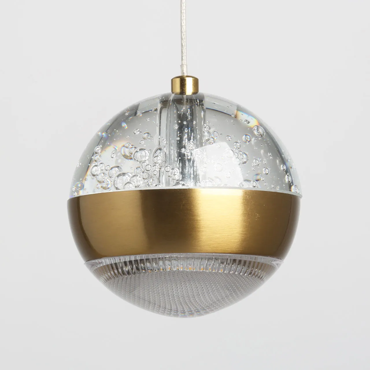 Основание/ сплав алюминия/латунь Плафон/ стекло, акрил/ прозрачный, пузырьки воздуха